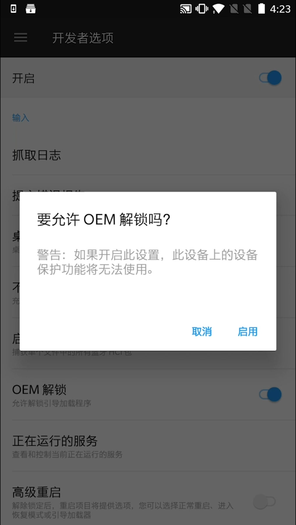 - 重新进入 "设置 - 开发者选项",开启 "OEM 解锁" 选项,开启 USB 调试选项